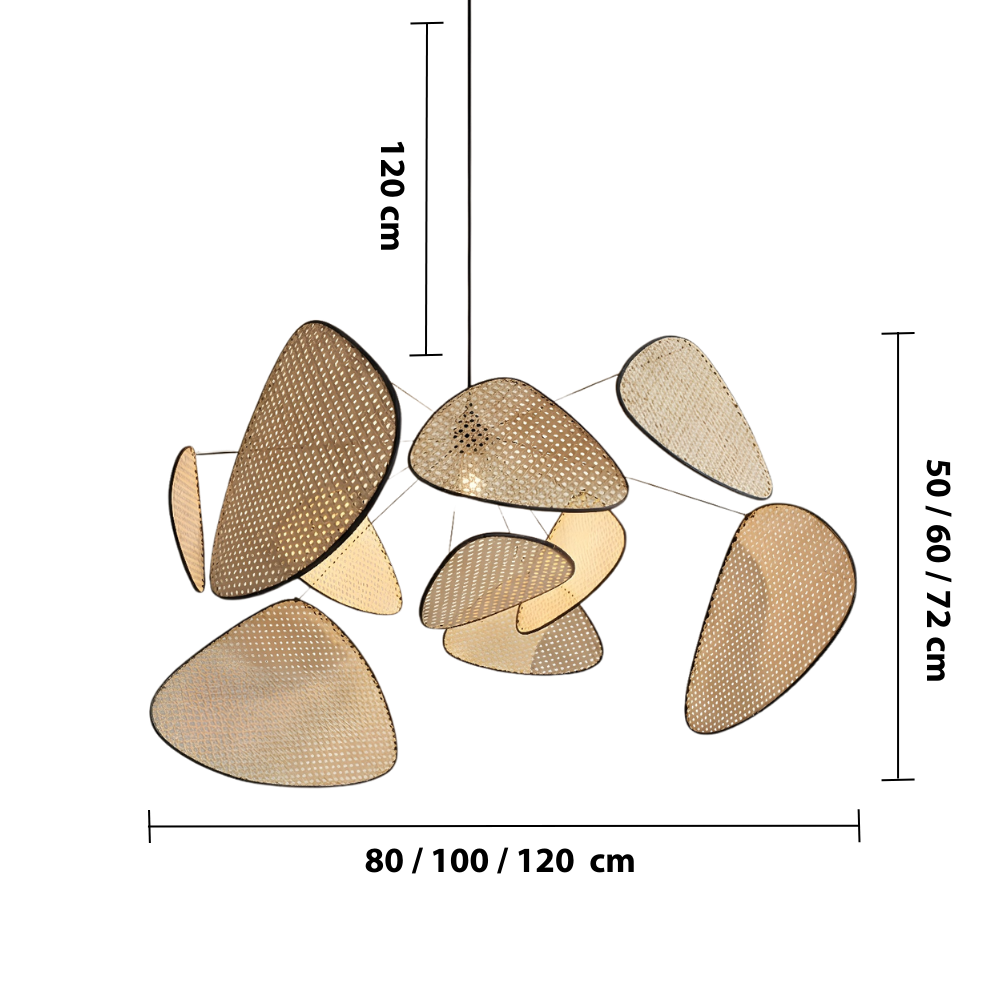 - Handwoven rattan + bamboo